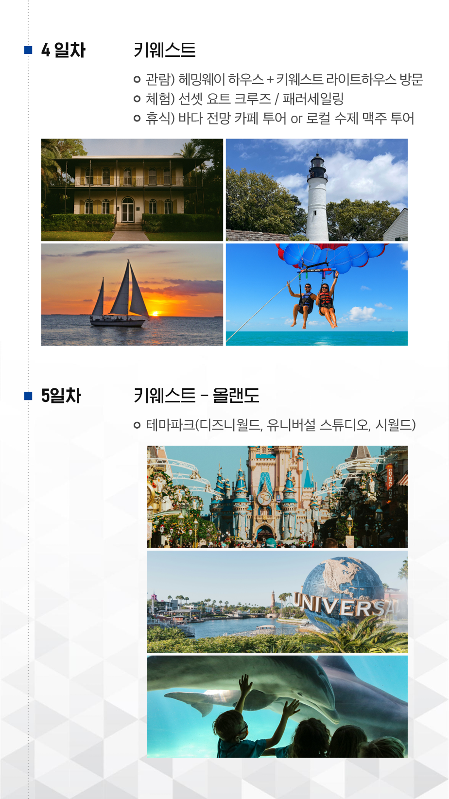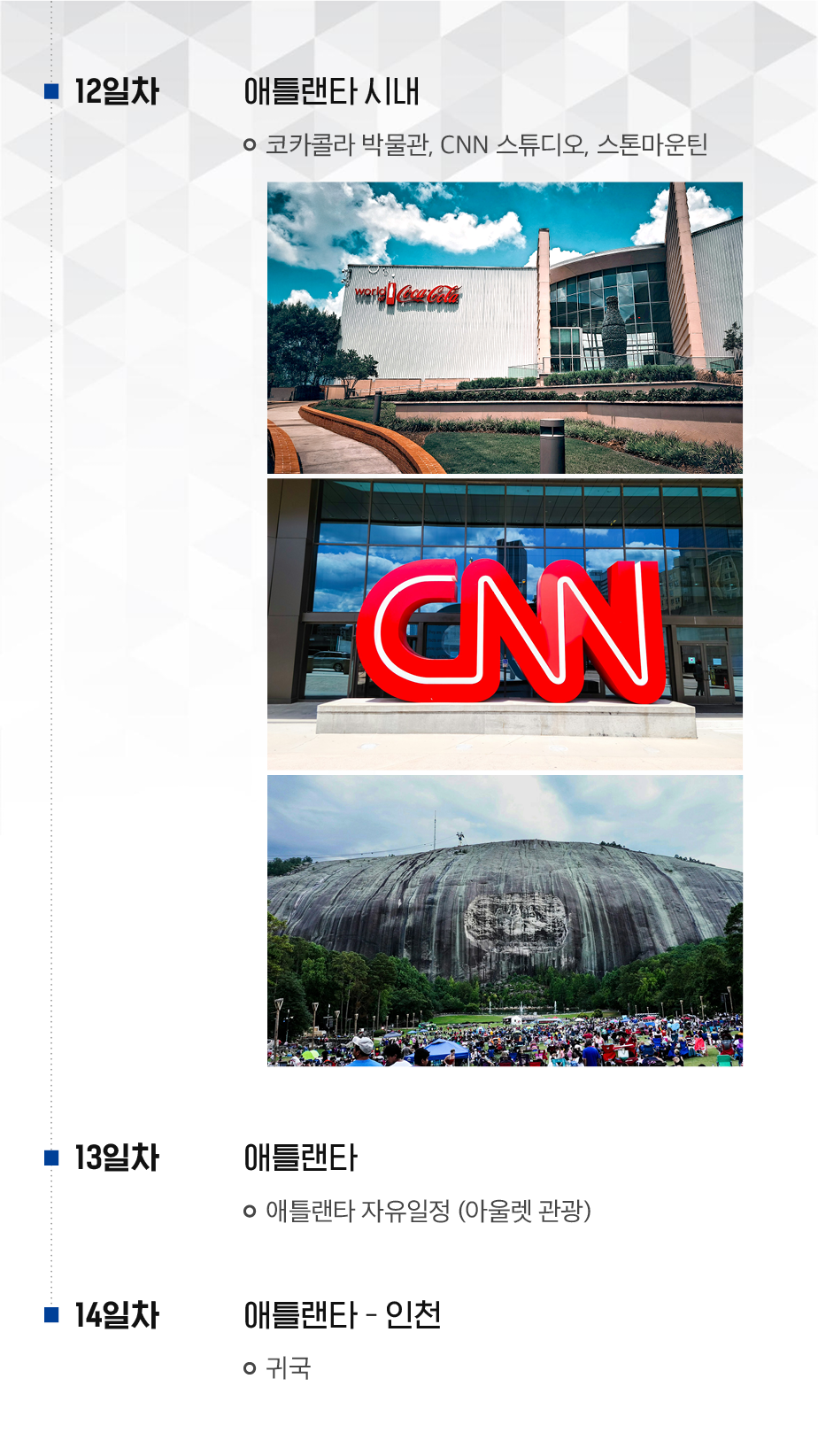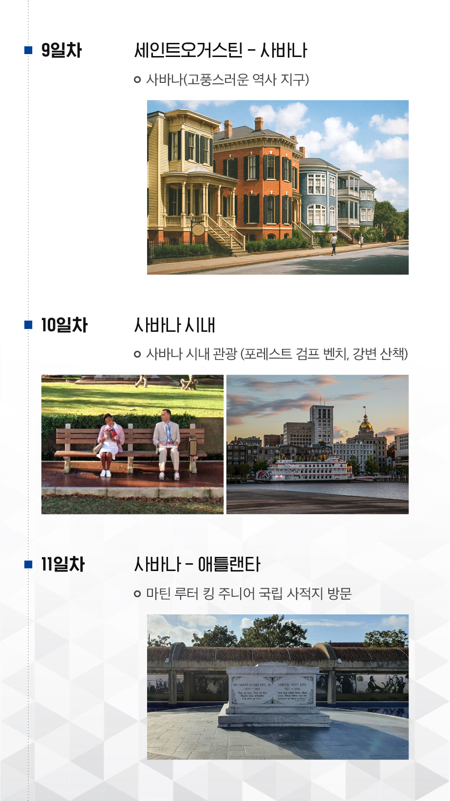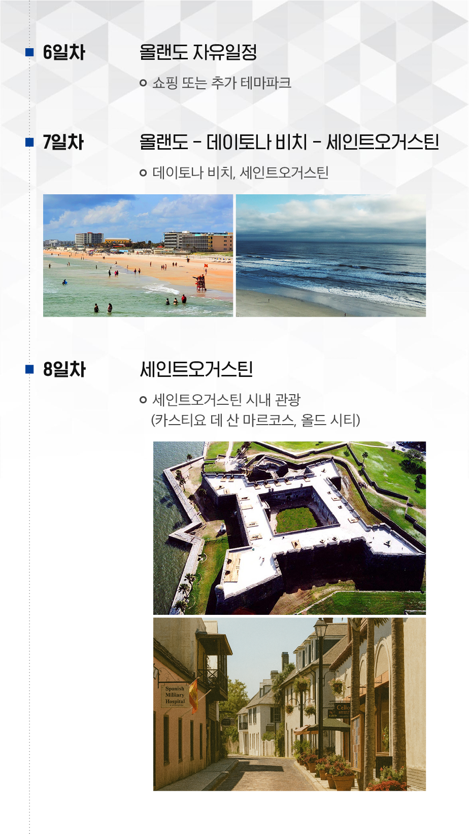 마이애미, 키웨스트, 올랜도, 세인트오거스틴, 사바나, 애틀랜타 등