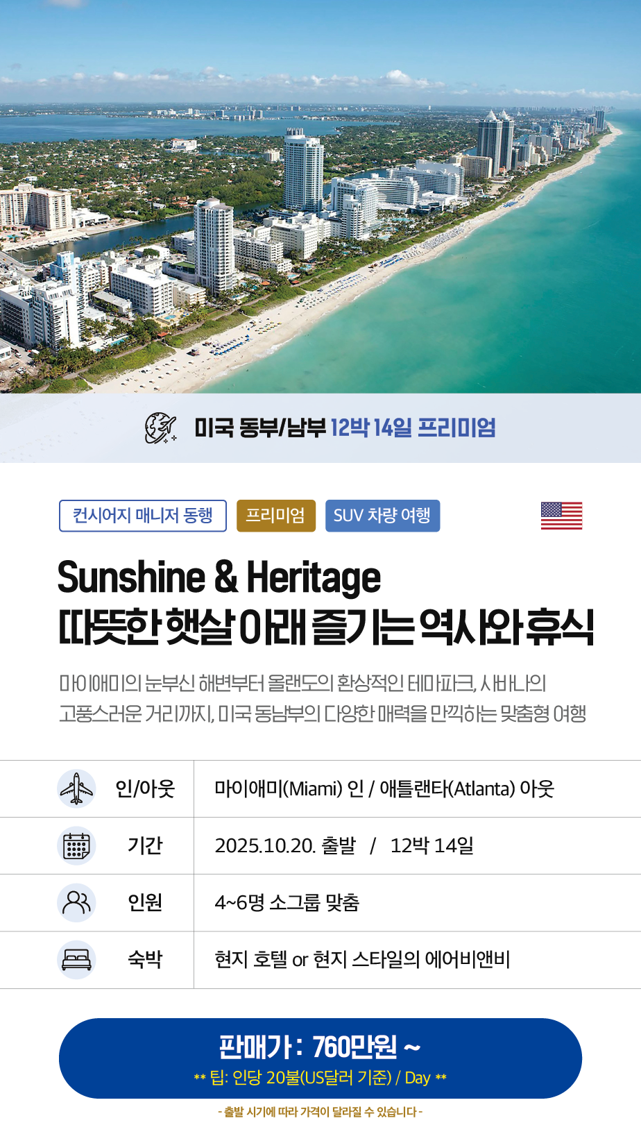 760만원 부터 | 팁. 인원당 20불(US 달러 기준) / Day