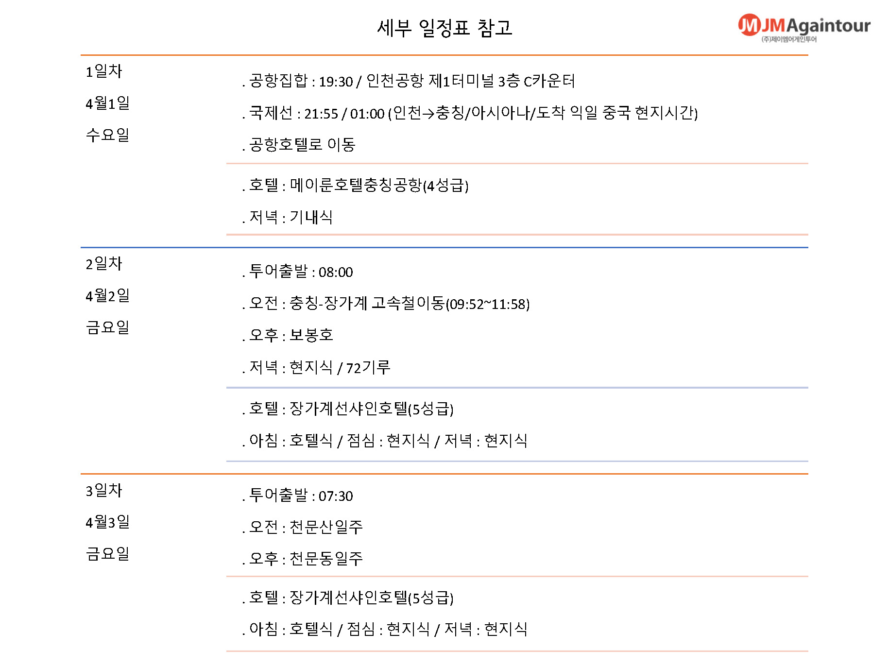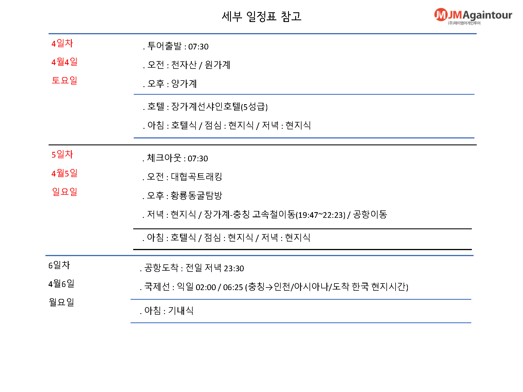 여행일정